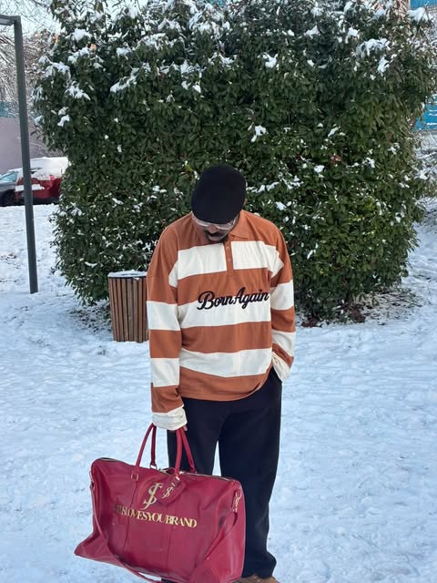 Un polo à manches longues en coton doux et confortable, pensé avec une coupe naturellement oversize. Ses rayures roses et écrues lui donnent une allure rétro et moderne à la fois. L’inscription brodée « Born Again » sur la poitrine apporte une touche signature, subtile et affirmée. Une pièce forte, idéale pour un look casual assumé.